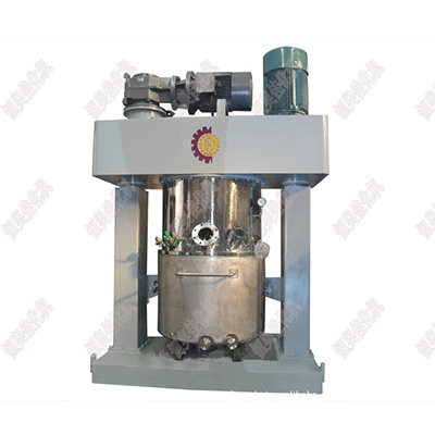 4、設(shè)備上裝有低速攪拌部件和高速分散部件,均采用變頻調(diào)速可根據(jù)不同工藝流程及 不同的粘度進行自我選擇。低速攪拌部件采用行星齒傳動,攪拌漿在公轉(zhuǎn)時也能自轉(zhuǎn)使 物料上、下及四周運動,使物料在很短時間內(nèi)達到理想的混合效果。高速分散部件與行 星架一起公轉(zhuǎn),同時高速自轉(zhuǎn)使物料受到強烈的剪切與分散混合,其效果為普通混合機 的幾倍。