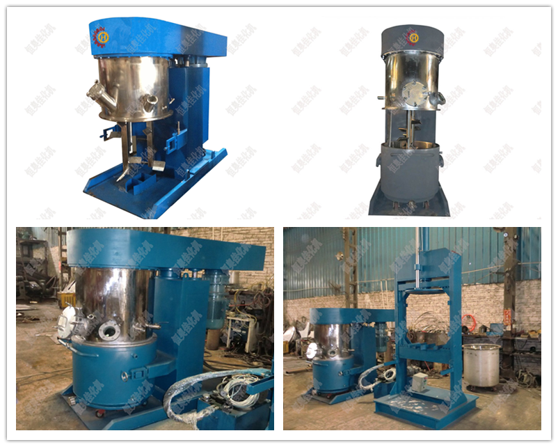 4.行星機采用行星箱傳動方式。低速在行星齒輪的傳動下,攪拌槳在公轉時也能自轉使物料上、下及四周運動,是物料在很短時間內達到理想的混合效果。刮邊采用獨特的設計方式,既能把掛在桶壁和桶底的物料干凈地刮到中間參與反應,又降低了與桶壁的摩擦力,使之效果及效益更高。